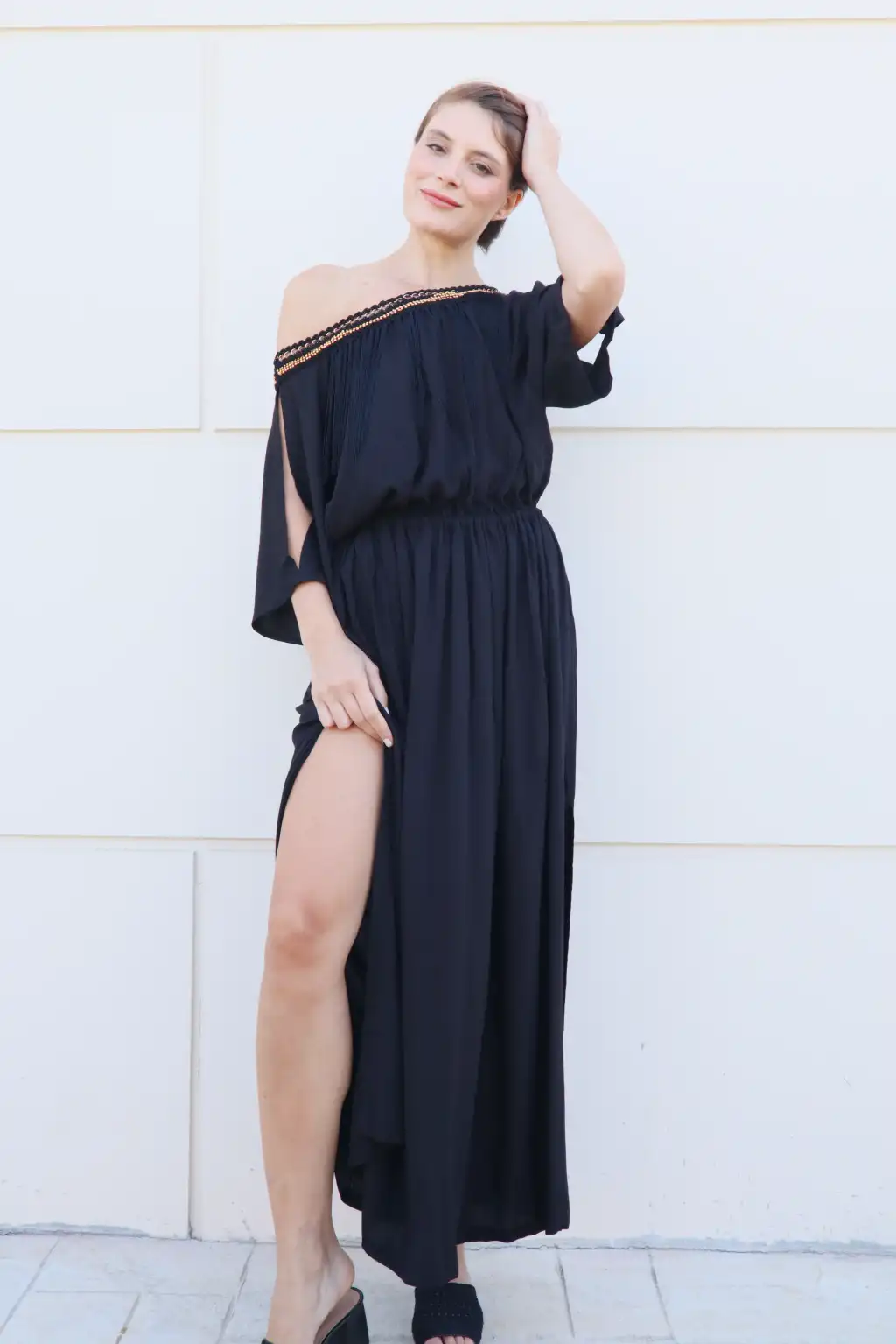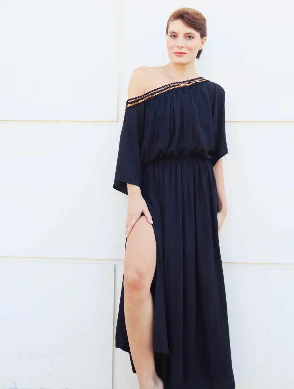 düşük omuz ve derin yurtmacı ile benzersiz bir parça!