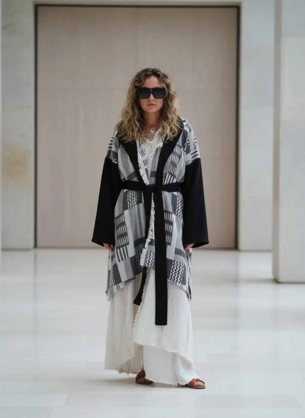 Yumuşak pamuk dokuması ve kalın dokusu ile sonbahar ve kış mevsimleri için ideal bohem stil kış kimonosu, geniş beden aralığına olan oversize kalıp.