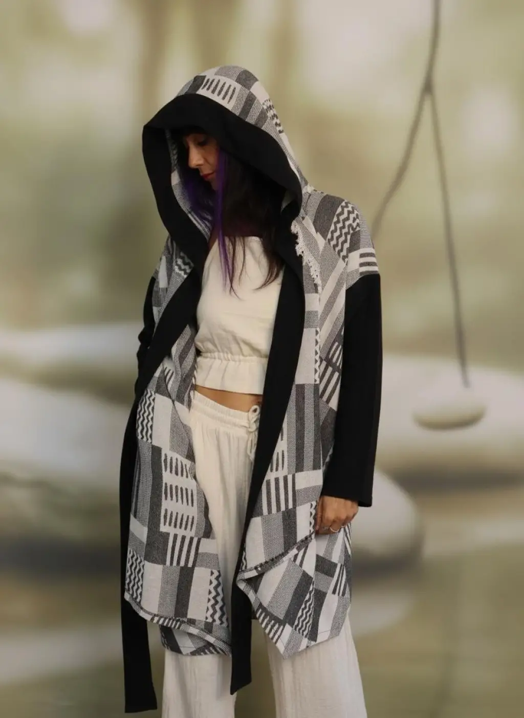 Bohem Stil Kapşonlu Pamuk Kimono
