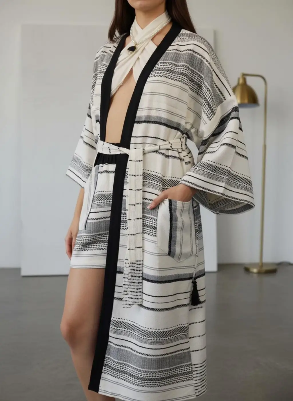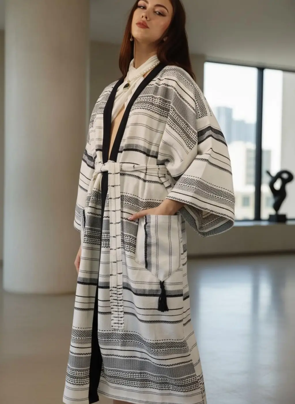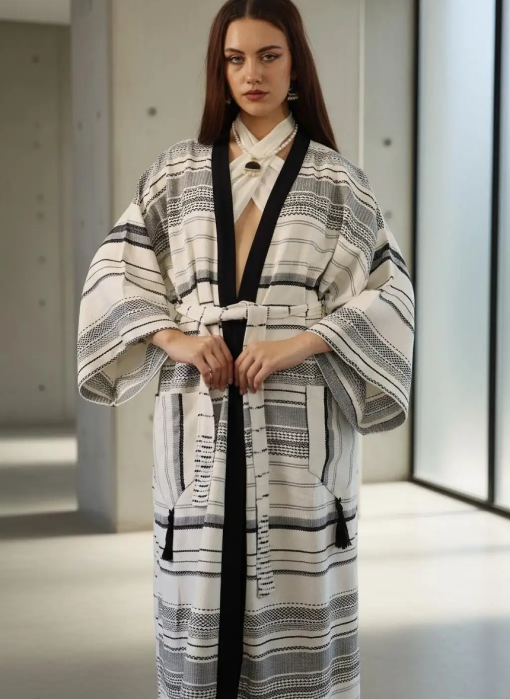 TOTEM DOKUMA JAKAR PAMUK KİMONO / Bej