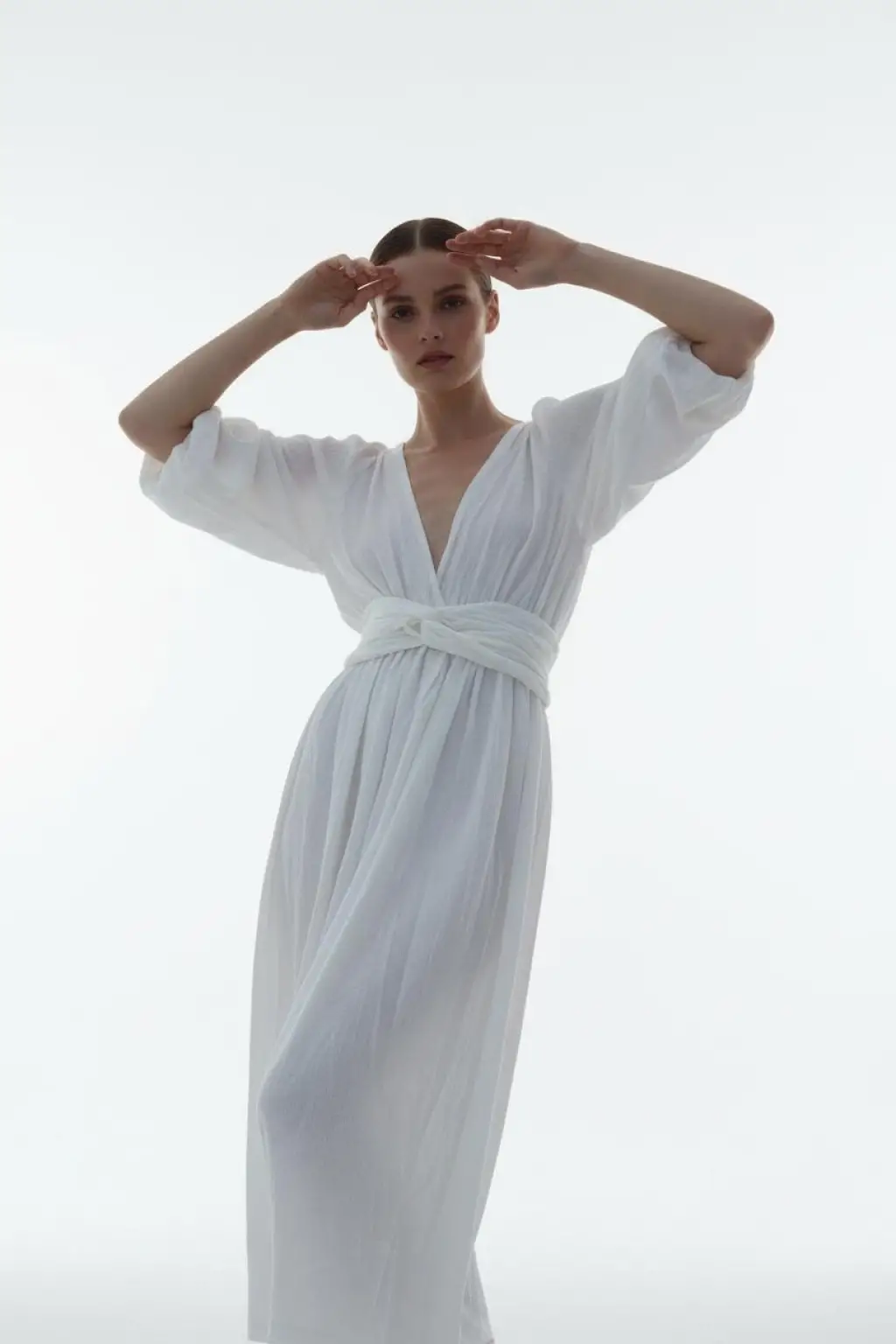 Çıkartılabiir kemer detayı ile romantik stil Şile Bezi elbisemiz masum bir şıklık sunuyor.