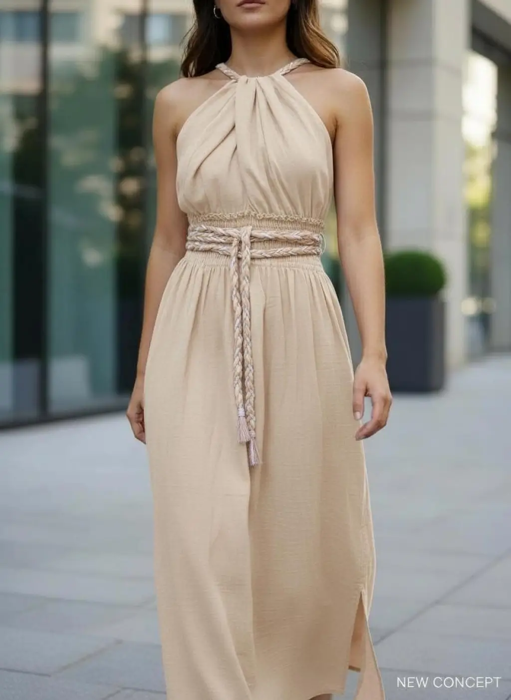 benzersiz dokuması sırt dekoltesi ve el örgü kemer detayı ile öne çıkan elbisemiz, geniş beden aralığına uyum sağlar.