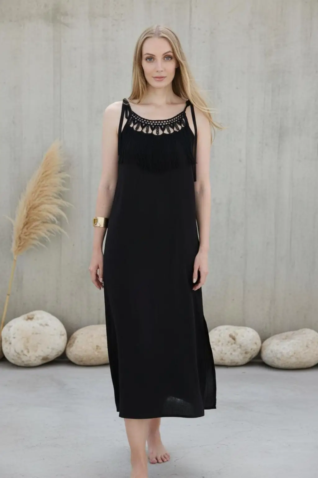 ARTENA ASKILI PAMUK DANTEL DETAYLI BOHO ELBİSE