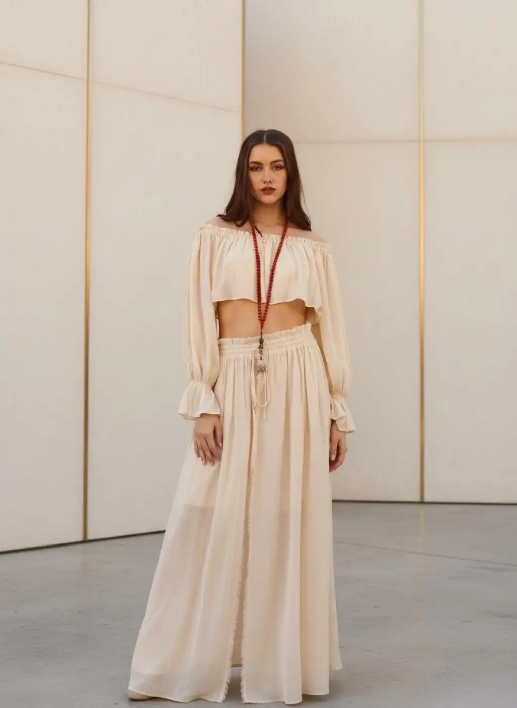 ELMAS KAFTAN & ELBİSE TAKIM / Ekru