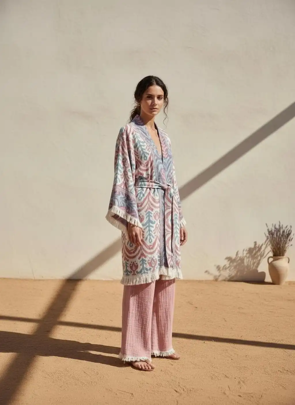 İkat desen dokuma pamuk kimono