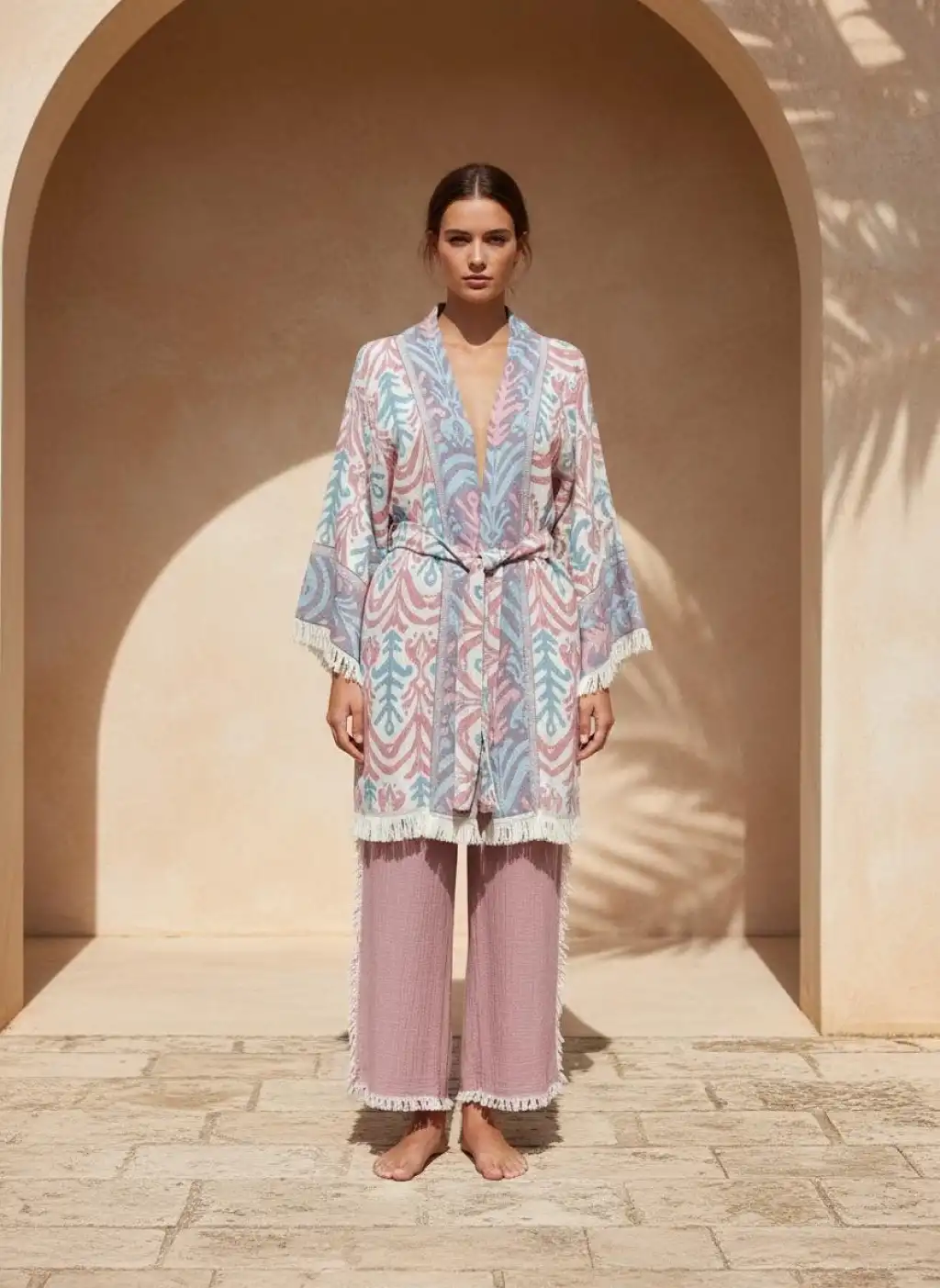 TILSIM PAMUK DOKUMA TAŞ BASKI KİMONO