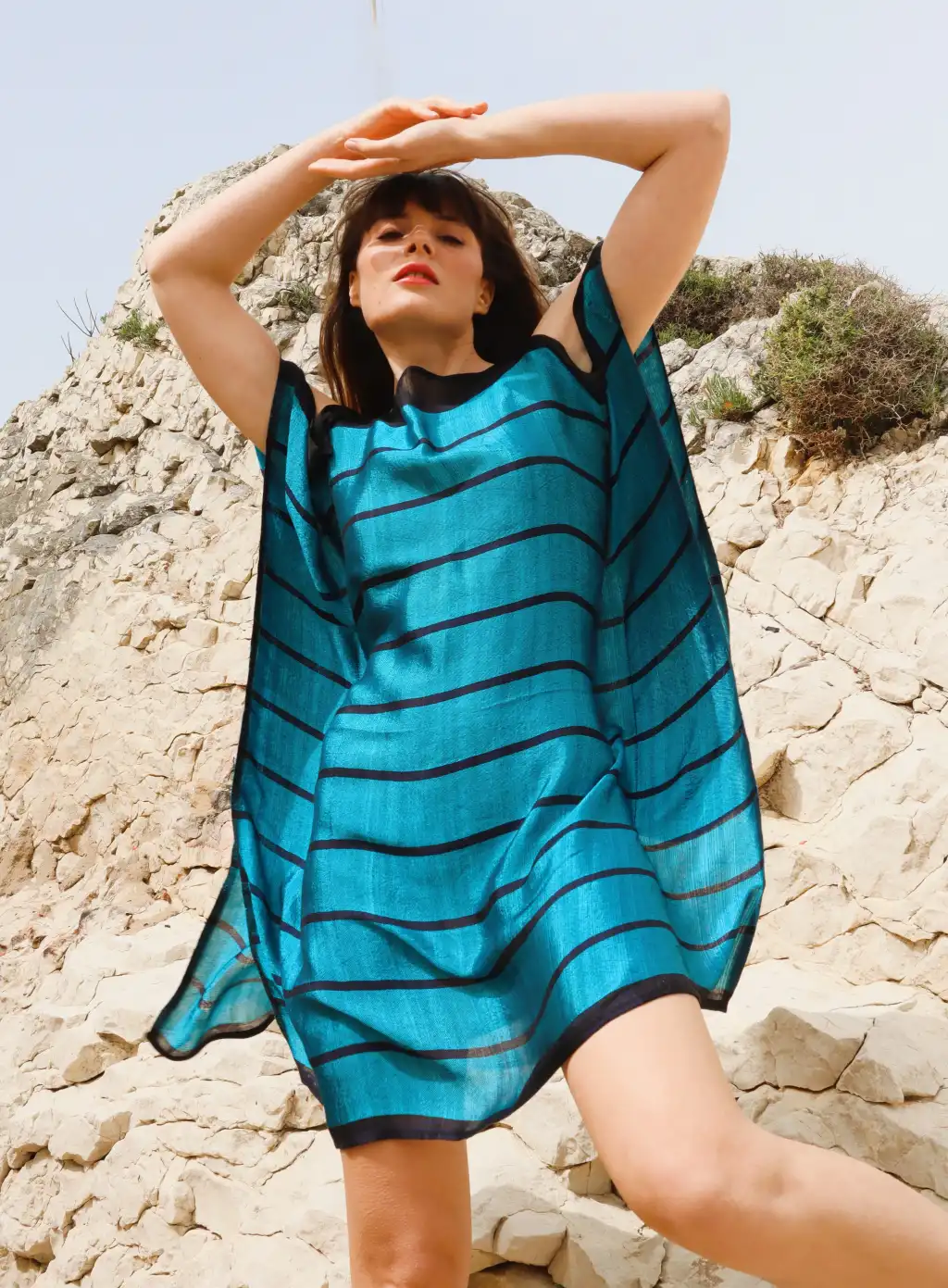 EL dokuma buldan ipeği, parlayan yumuşacık dökümlü kumaşı ve geleneksel & lüks tarzı ile öne çıkan Silk Road Tunik, mini elbise olarakta kullanılabilir.