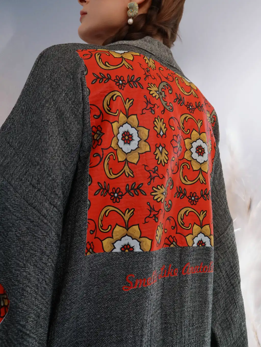 İZNİK ÇİNİ DESEN PAMUK KANVAS BASKILI CEKET