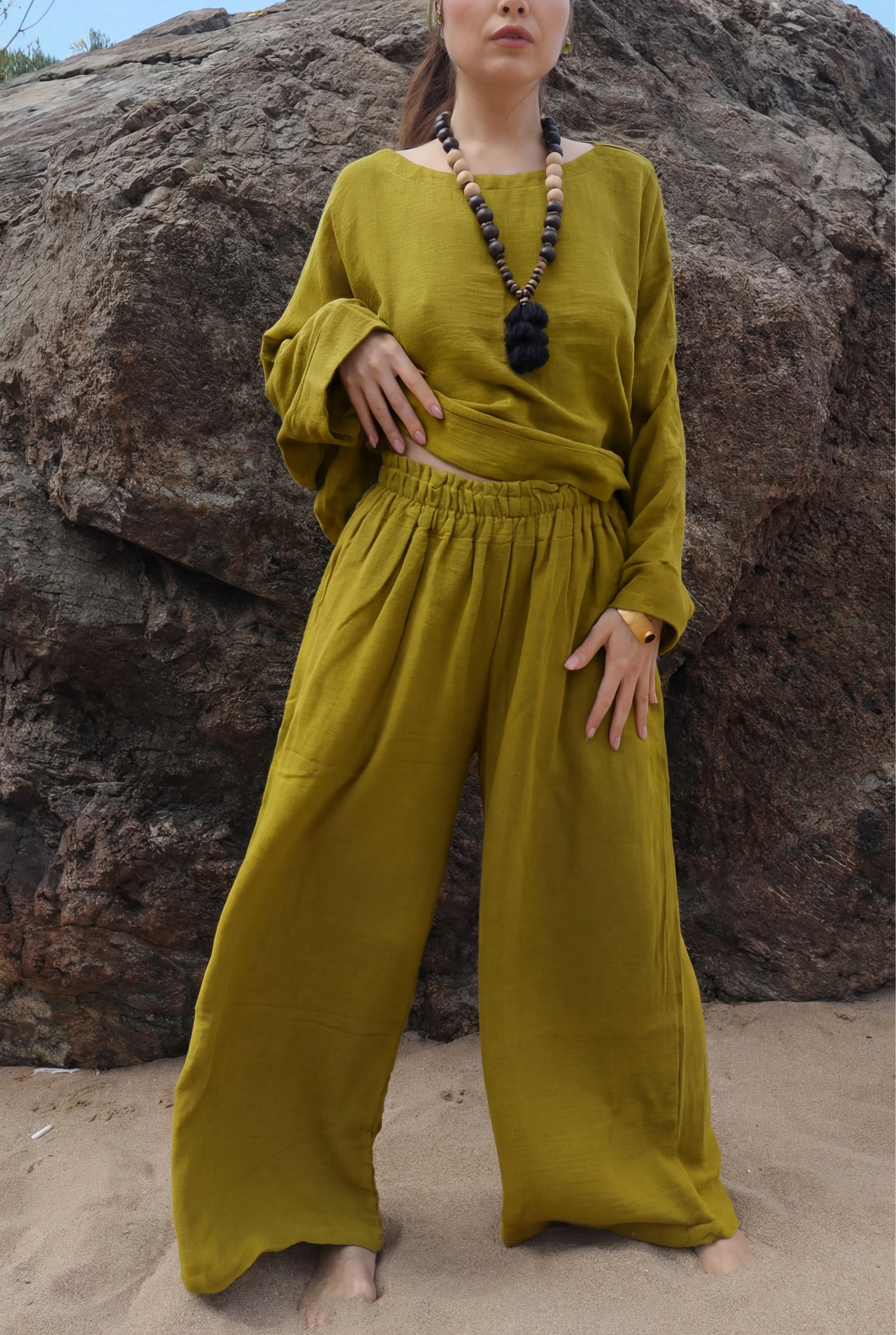 SOUL MÜSLİN BLUZ PANTOLON TAKIM / Fıstık Yeşili