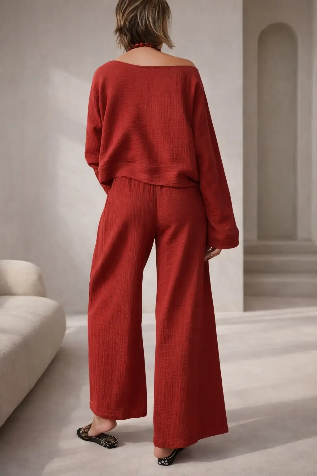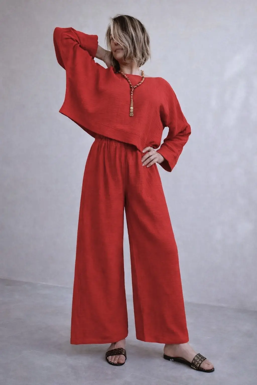 SOUL MÜSLİN BLUZ PANTOLON TAKIM / kırmızı