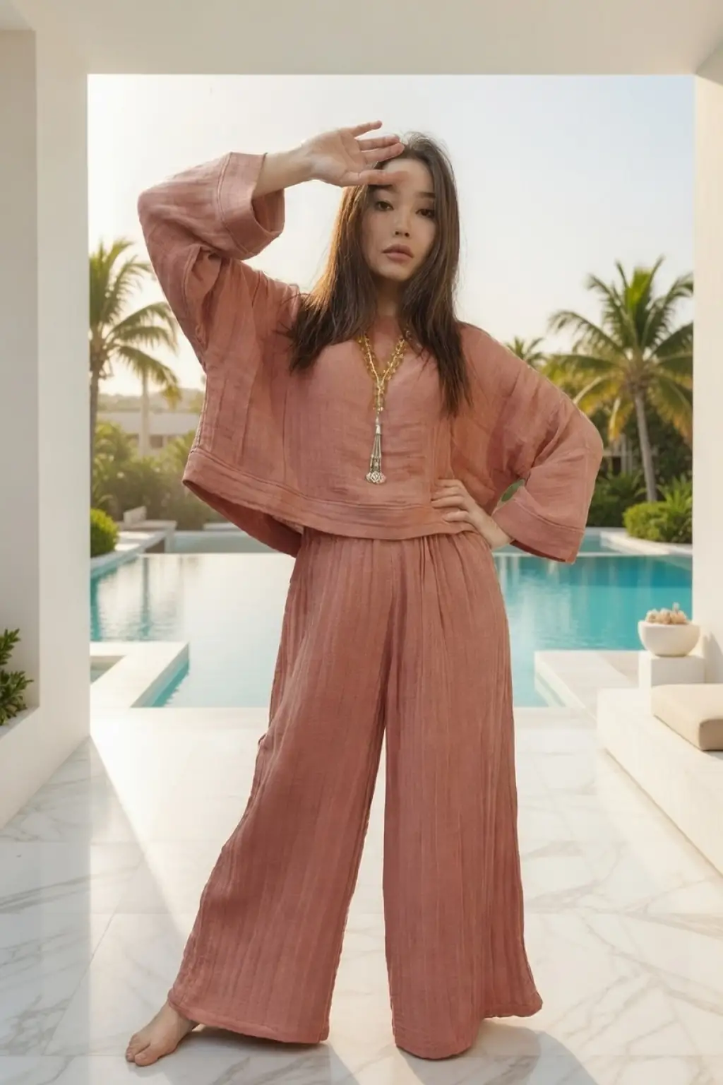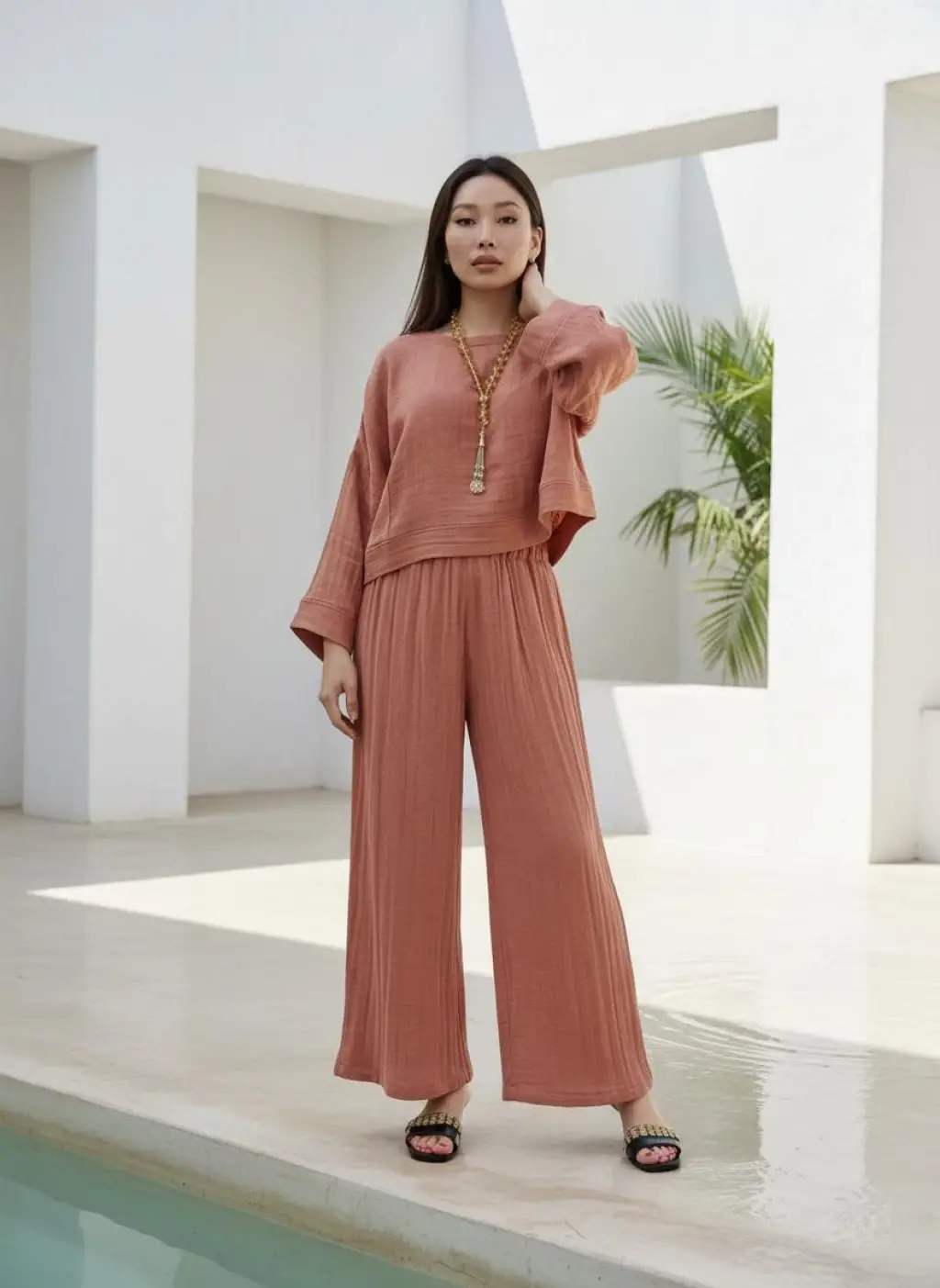 SOUL MÜSLİN BLUZ PANTOLON TAKIM / yanık turuncu
