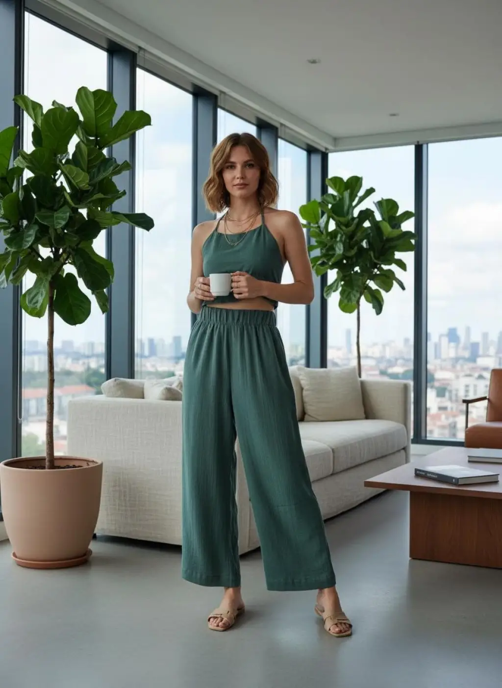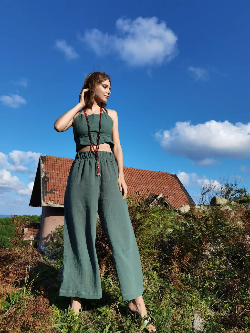 SOUL MÜSLİN BLUZ PANTOLON TAKIM /petrol