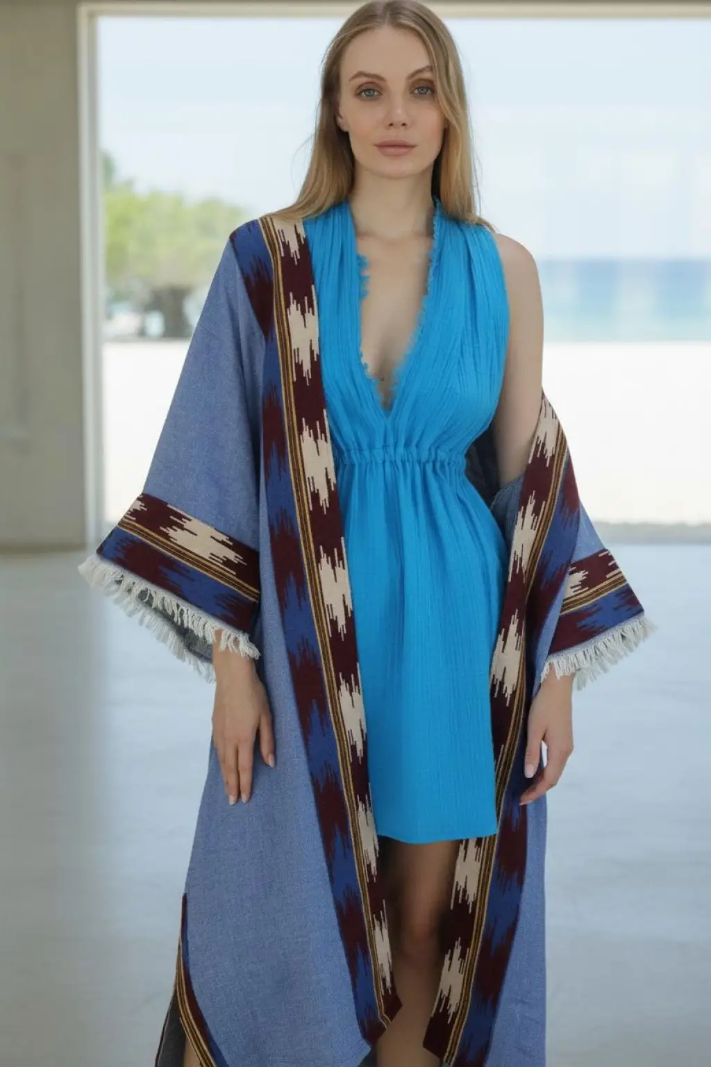 Kilim Bordür Detaylı Müslin Dokuma Kaftan