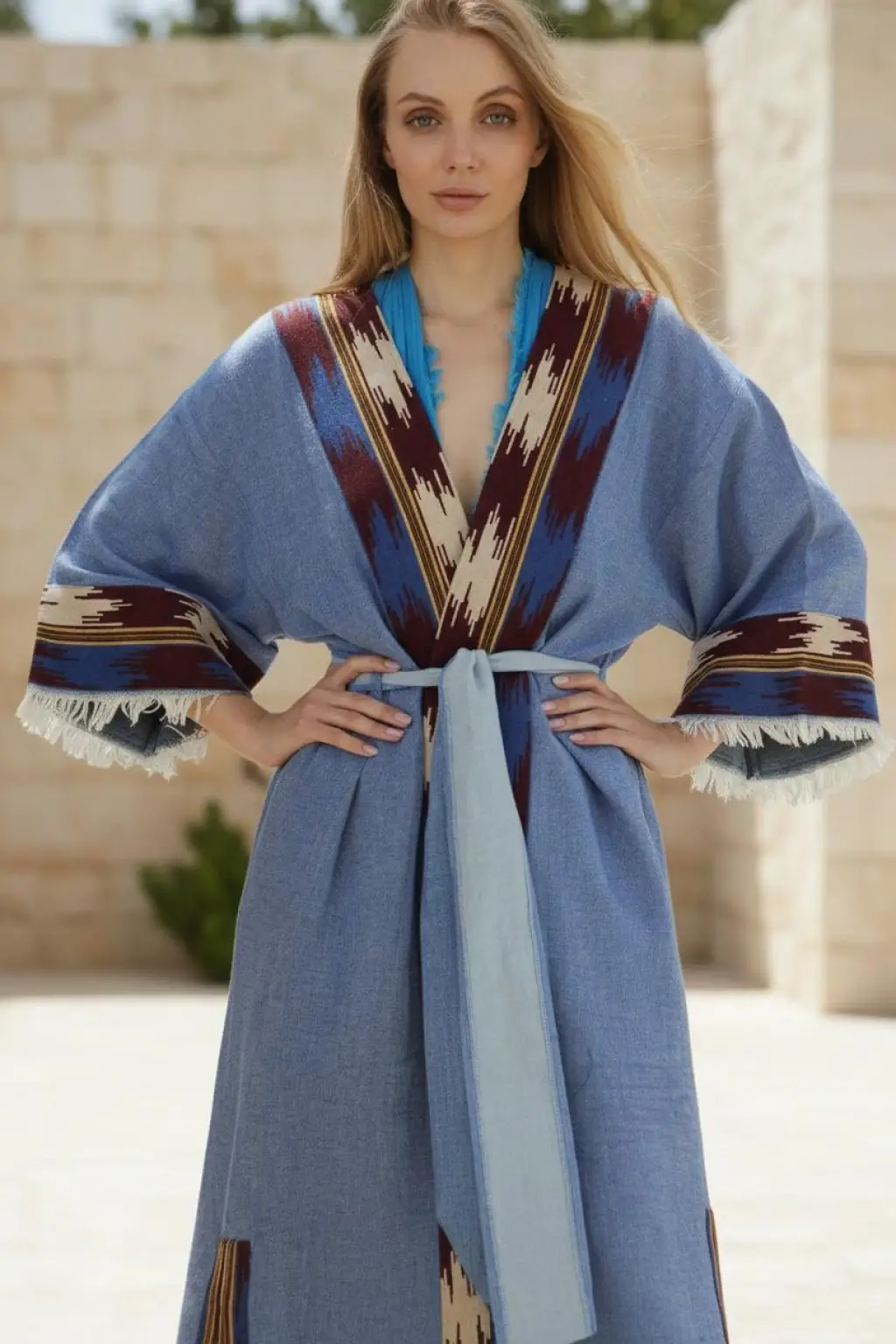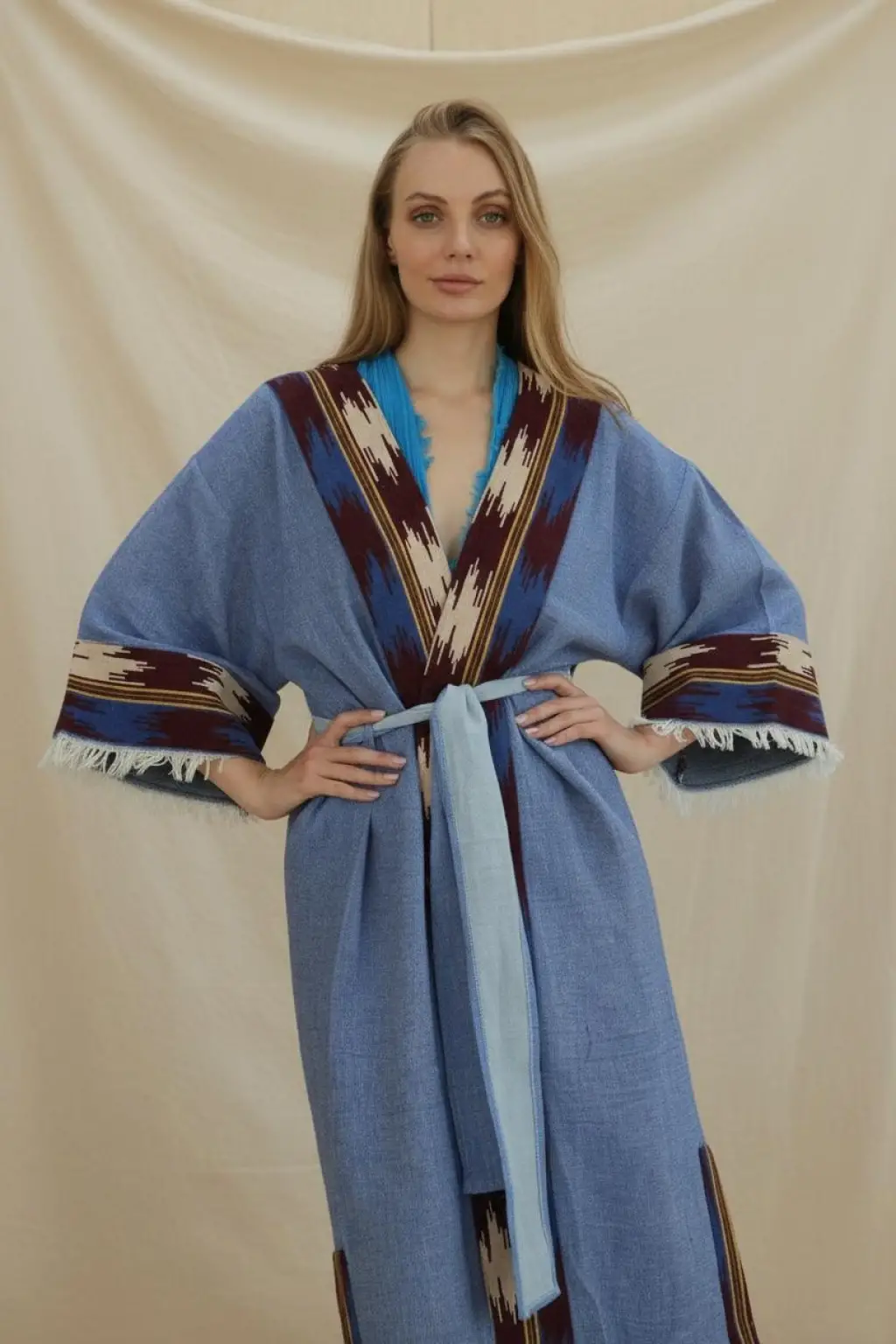 TOTEM DOKUMA JAKAR PAMUK KİMONO / MAVİ