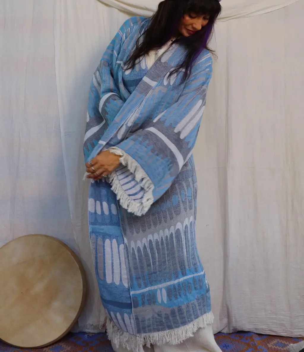 TOTEM DOKUMA JAKAR PAMUK KİMONO / MAVİ
