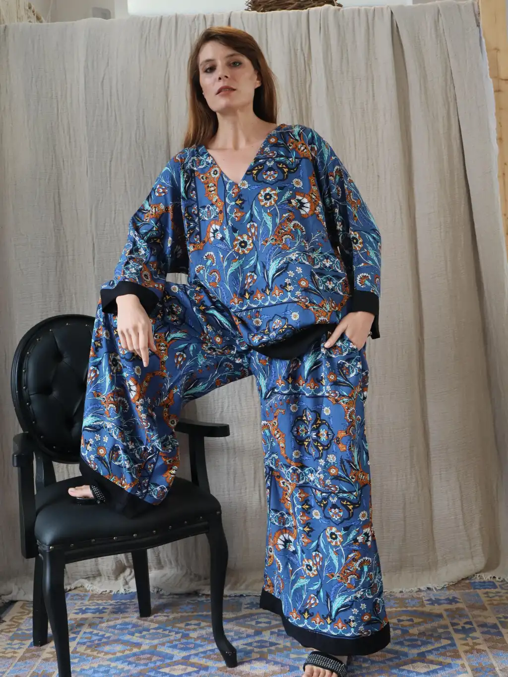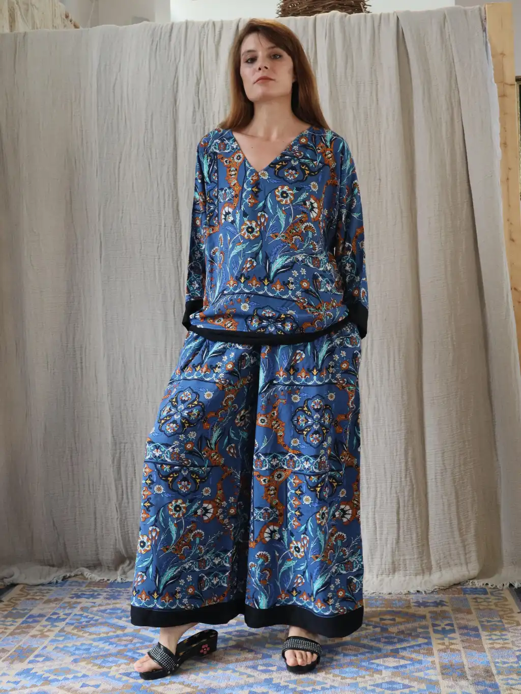 SOUL MÜSLİN BLUZ PANTOLON TAKIM / mavi