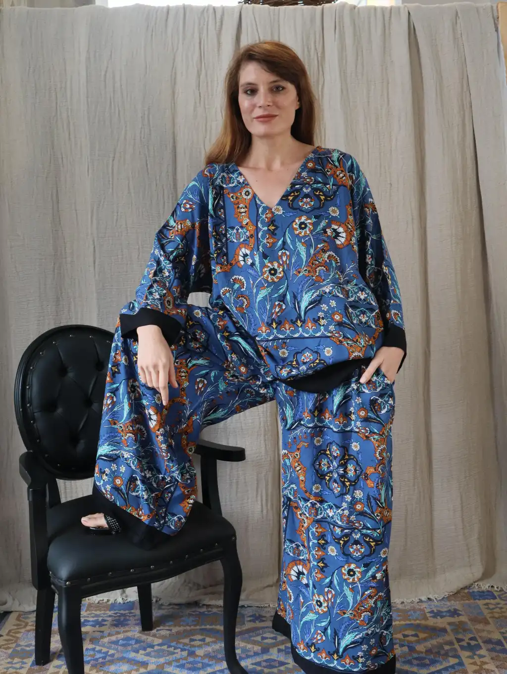 Buyuk Beden Oversize viskon lale desenli salaş takım