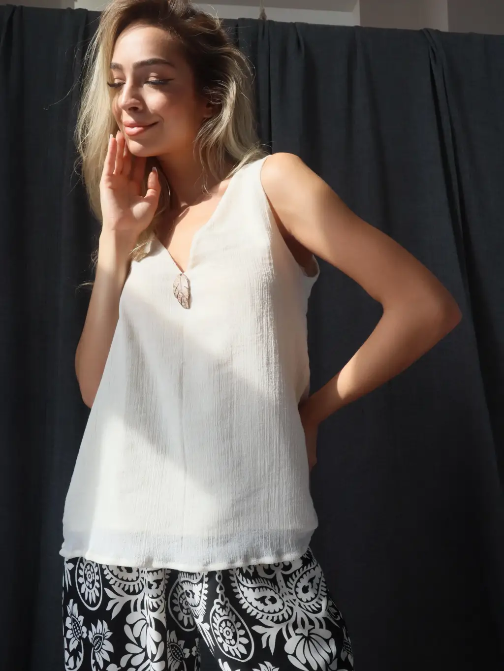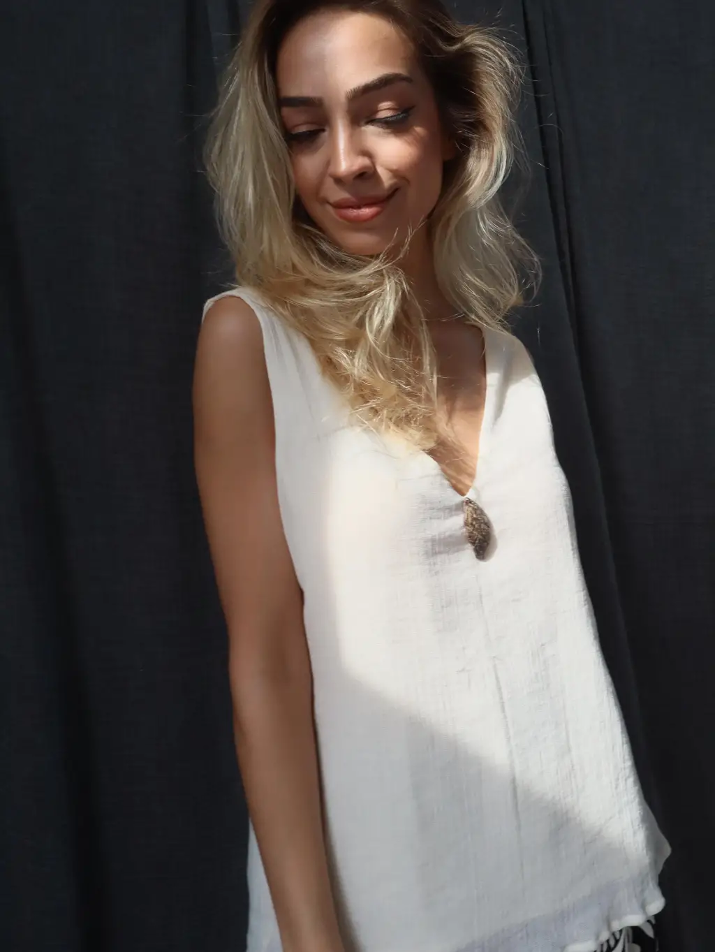 PAMUK VUAL & MÜSLİN V YAKA BLUZ