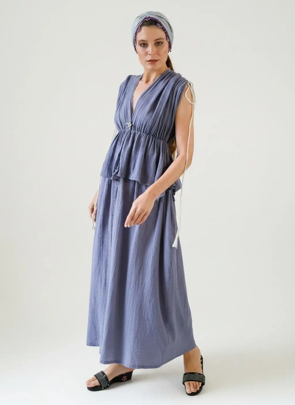 CLEOPATRA İP DETAYLI ASKILI ELBİSE